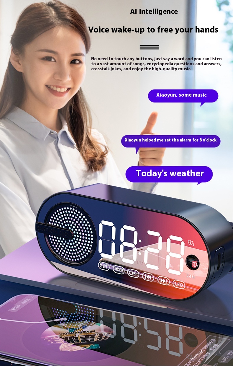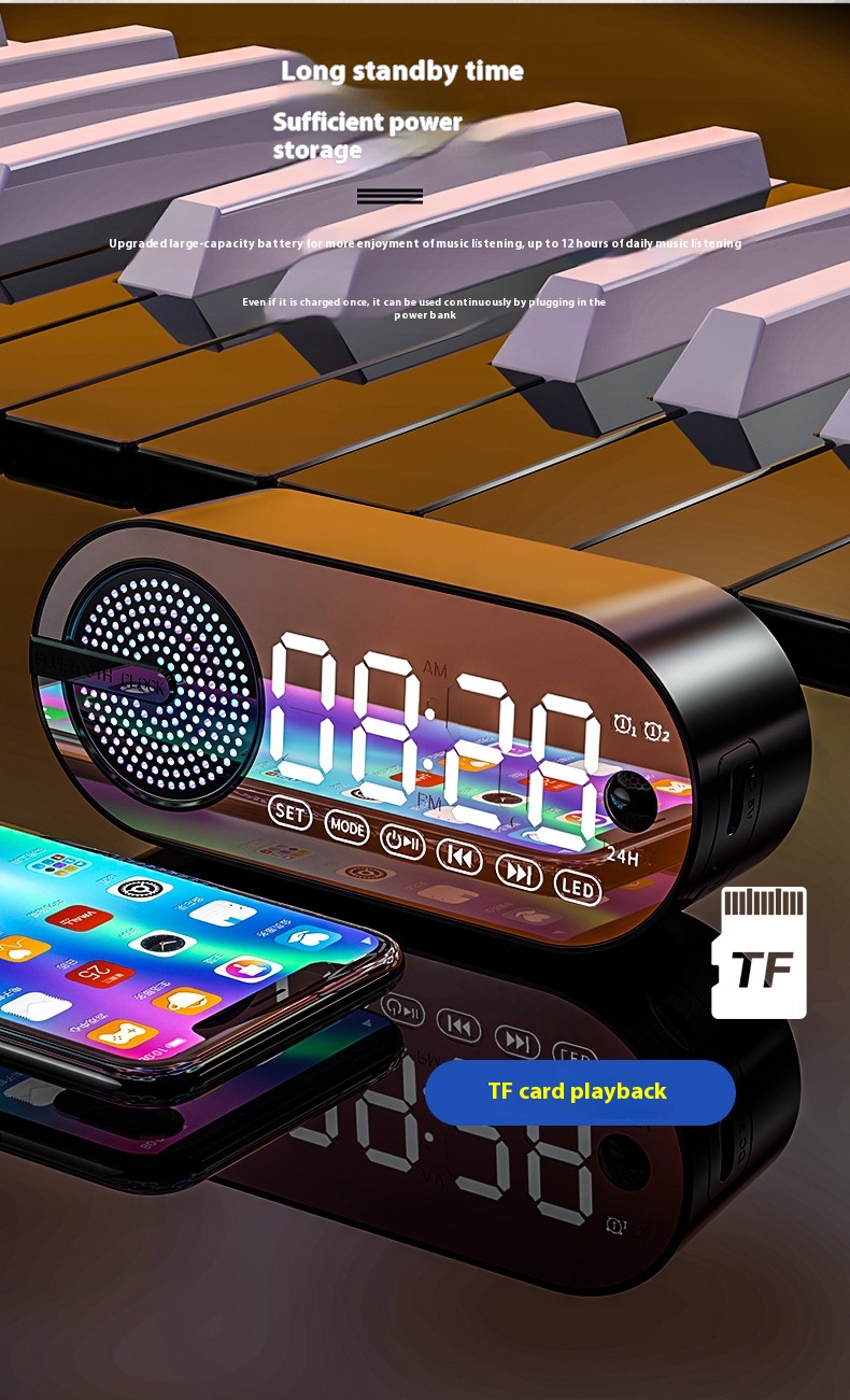 Color: [dark gray-English Standard Edition] clock alarm clock Bluetooth TF card slot small night lamp, [Yinchuan White-English Standard Edition] clock alarm clock Bluetooth TF card slot small night lamp, [Peach pink-English Standard Edition] clock alarm clock Bluetooth tf card slot small night lamp, [flare black-English induction version] clock alarm clock Bluetooth tf card slot small night lamp long standby, [Yinchuan White-English induction version] clock alarm clock Bluetooth tf card slot small night lamp ultra-long standby, [peach pink-English induction version] clock alarm clock Bluetooth tf card slot small night lamp ultra-long standby